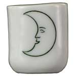 White Porcelain Mini Candleholder with Moon. Holds a 4" taper candle.