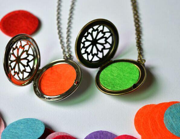 These wonderful vintage look lockets are great for essential oils or perfume. Included are felt pads so that you can change your essential oils to meet your needs and or moods. Beautiful detailing. Color of felt inserts will vary.