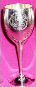 chalice 8" tall. Triquetra symbol on the front of the goblet.