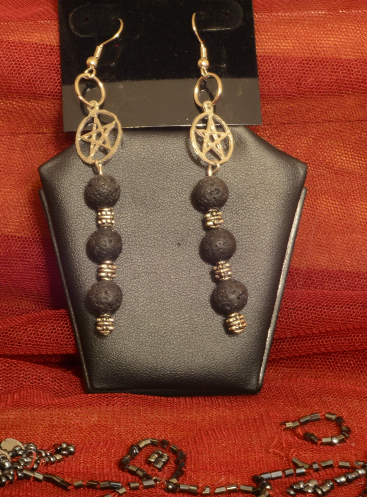 Beautiful pentacle earrings with natural black lava rock. Can be used for essential oils and aromatherapy. Just drop your desired scent onto the lava rock. Lava stone is considered grounding and the pentacle is for protection. All jewelry is created within sacred space and is reiki charged.