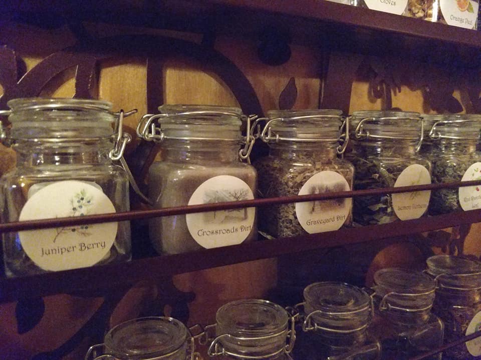 This is truly an amazing and beautiful apothecary shelf. The set includes 34 GLASS jars -- 30 pre-filled containing herbs noted on each label and 4 empty jars for your own personal blends/items. The labels on the back of each jar have both medicinal and magickal uses. This set is what every witch needs for all types of spell work, rituals, and healing applications.
