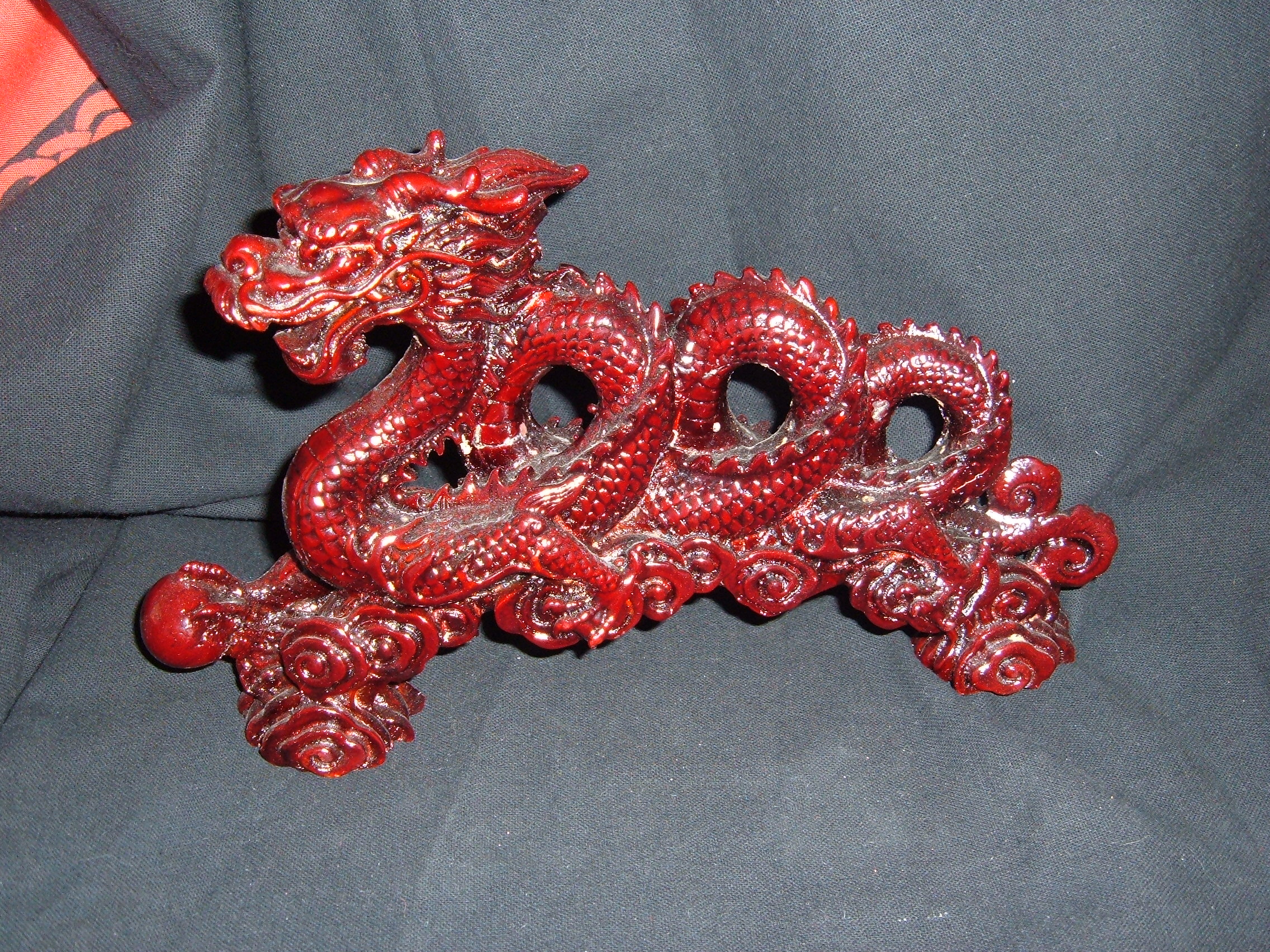 Beautiful red Chinese style Dragon. Great for any altar or as decoration for you home or sacred space. Apprx. 4.25" tall x 5" wide.