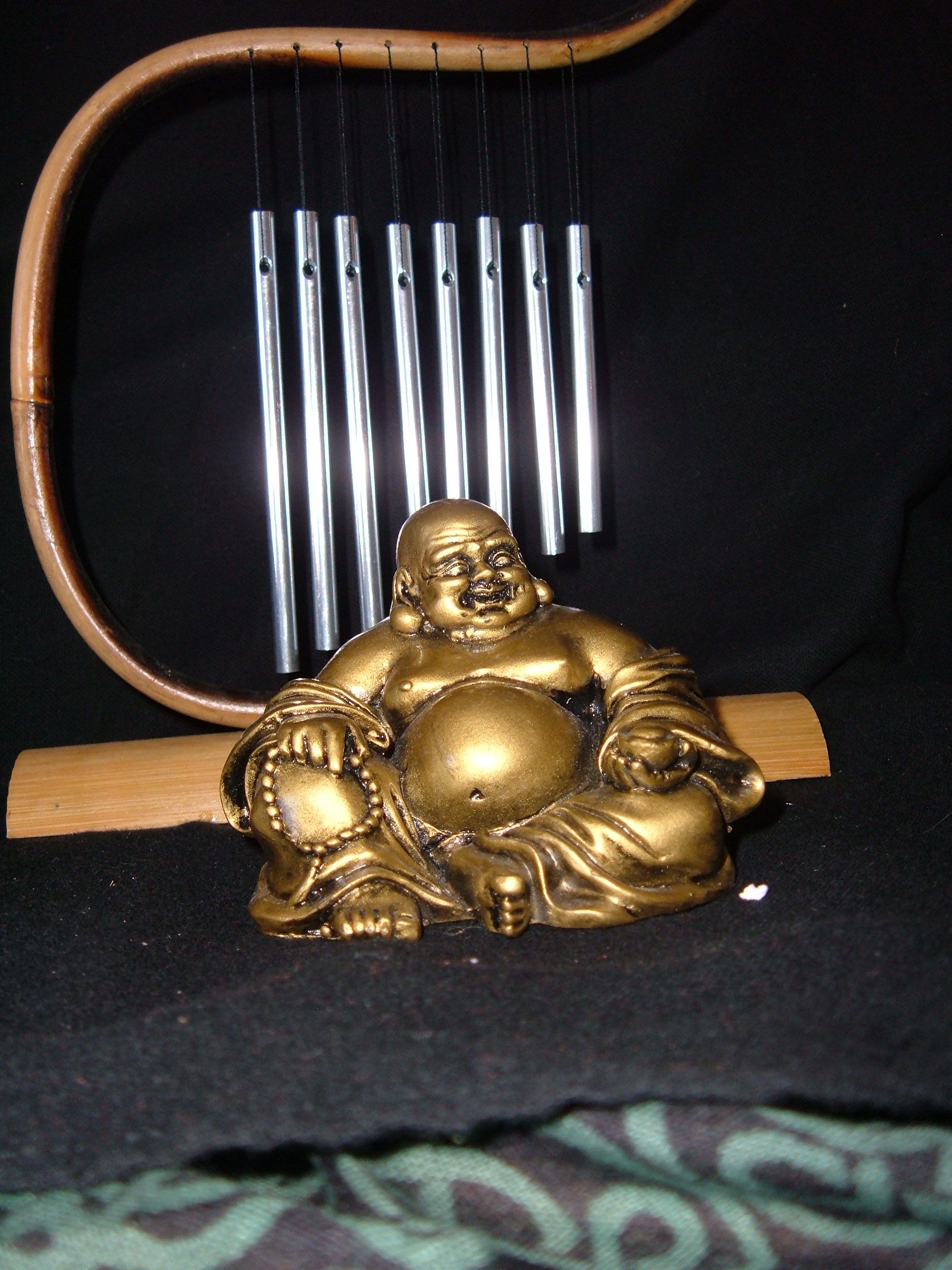 Beautiful sitting Buddha. Happy and laughing, this is great for any altar or as decoration for you home or sacred space. Apprx. 4" tall x 4" wide.
