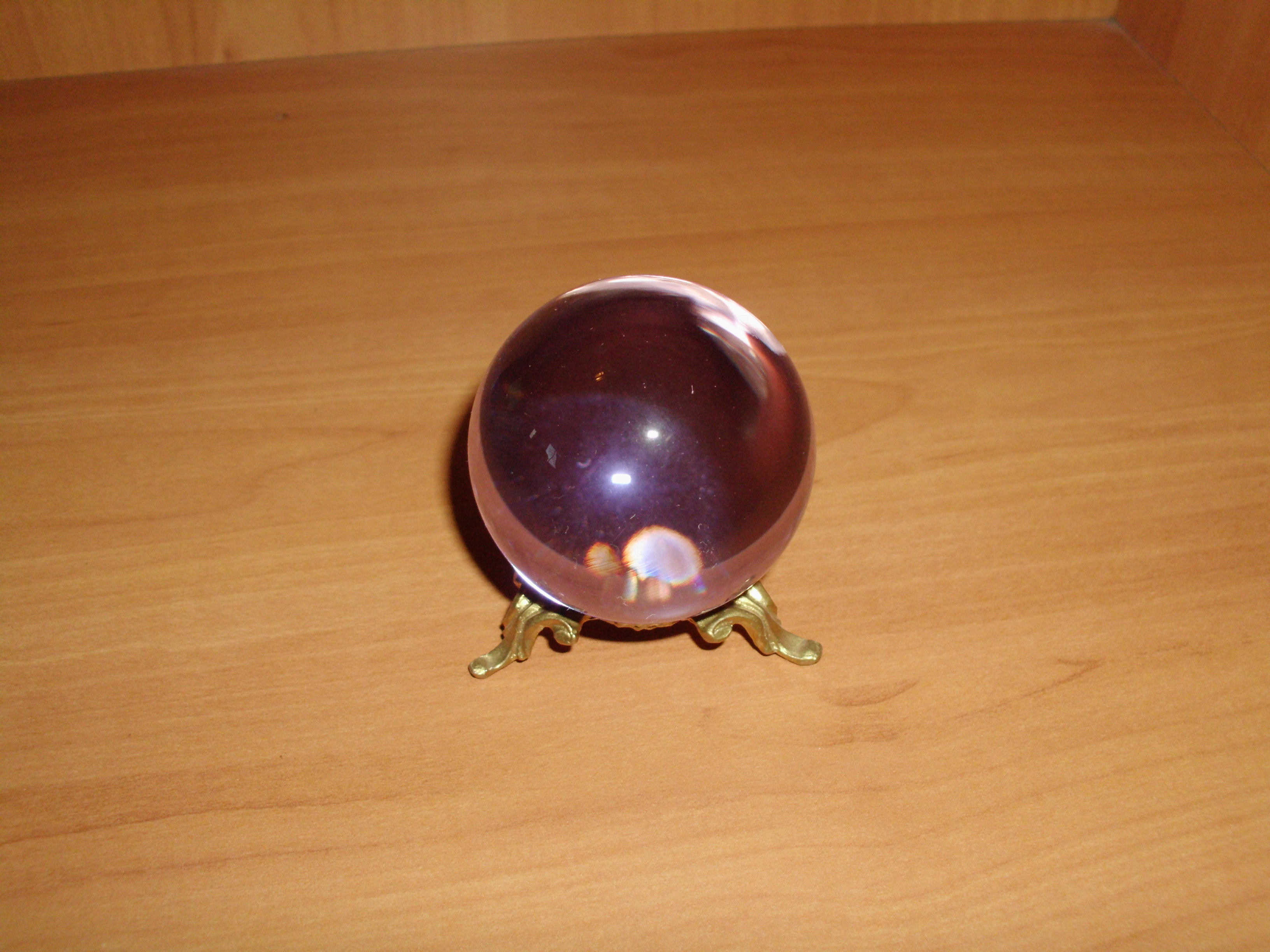 This beautiful glass gazing ball is in a soft lavender color. Use it for scrying or just to enjoy the beauty of its clear color. Approximately 2" (50mm) and comes with a small brass stand.