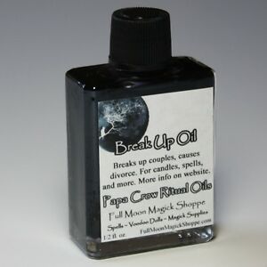 Break up oil is specially formulated to aid in the break up of two people. Oil can be used to dress candles, it could be used on the body and or to help the energy of rituals. *Please read ingredients before any contact with the skin to avoid any allergic reaction.