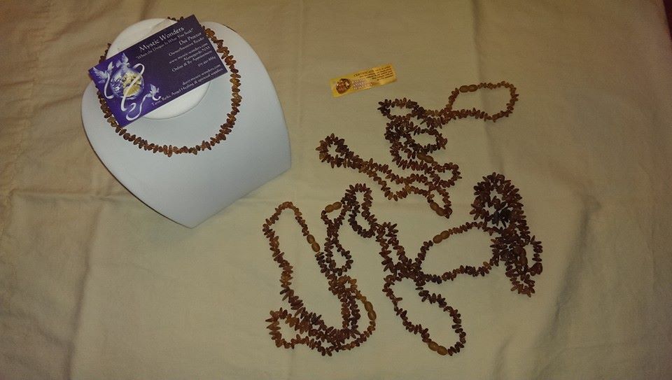 They are great for teething pain and relief of fever. The warmth from the skin releases the active ingredient in the Baltic amber, succinic acid. Recent scientific research has proved that succinic acid has a very positive influence on the human body. It improves immunity and the balance of acids when absorbed into the bloodstream; it stimulates the glands to help reduce drooling when used for teething and soothes red inflamed cheeks. Amber's anti-inflammatory and therapeutic properties are recognized by allopathic med as a natural analgesic, which will help to relieve teething pain and calm a baby without resorting to drugs. The skin's warmth releases healing oils from the amber, a resin, which is absorbed into the bloodstream.